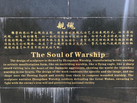 参观学习结束后,党员们来到了位于博物馆对面的金口镇长江边,这里就是中山舰曾经战斗和沉没的地方,遥望滔滔江水,滚滚东去,华夏江河血管流,思英烈,气浩然,历史不能忘,精神不能丢,同志们纷纷发表了自己的看法。在江边伫立的一座雕塑前,大家驻足良久,雕塑似不屈的战舰,似飞翔的雄鹰,向世人展示了“壮志常随云浪起,雄躯争与山河裂”的不朽“舰魂”。