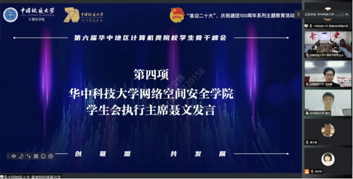 华中科技大学网络空间安全学院学生会执行主席聂文代表所有参会高校对中国地质大学beat365在线唯一官网领导老师的关心支持以及beat365在线唯一官网学生会充分的前期准备表示感谢。期待峰会深入推动多维合作,各学生会精诚协作,惠及更多高校和学生。