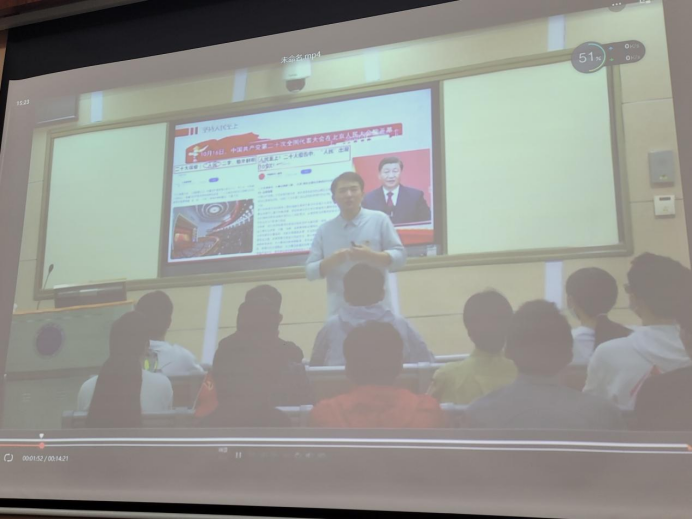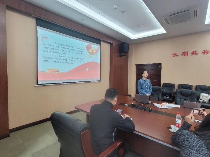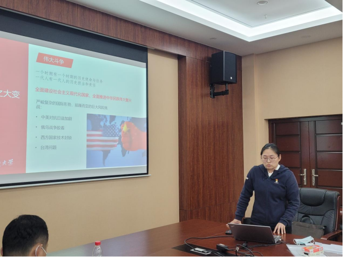 大数据系党支部支部宋维静以“志不强者智不达言不信者行不果——习近平谈治国理政第四卷坚持敢于斗争部分”为题,分享了近代以来中国人民敢于斗争、善于斗争的伟大历程。