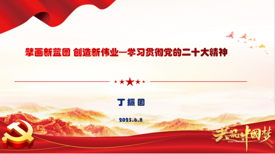 为深入学习贯彻党的二十大精神,用习近平新时代中国特色社会主义思想武装头脑、指导实践、推动工作,2023年6月8日下午,beat365在线唯一官网党委邀请我校关心下一代工作委员会副主任、“学习贯彻党的二十大精神银龄宣讲团”成员、原学校党委副书记丁振国教授,以“擘画新蓝图 创造新伟业——学习贯彻党的二十大精神”为主题,为全院教职工、学生党支部书记、学生会、研究生会骨干讲授专题党课。
