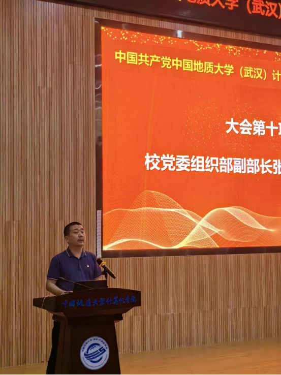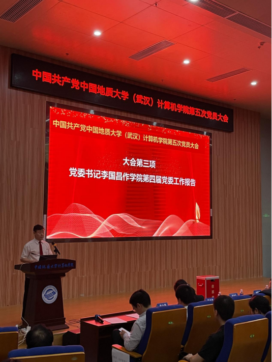 学院党委书记李国昌代表学院第四届党委作《全面加强党的领导 攻坚克难促发展-——为建设国内知名的高水平计算机学科而接续奋斗》工作报告。