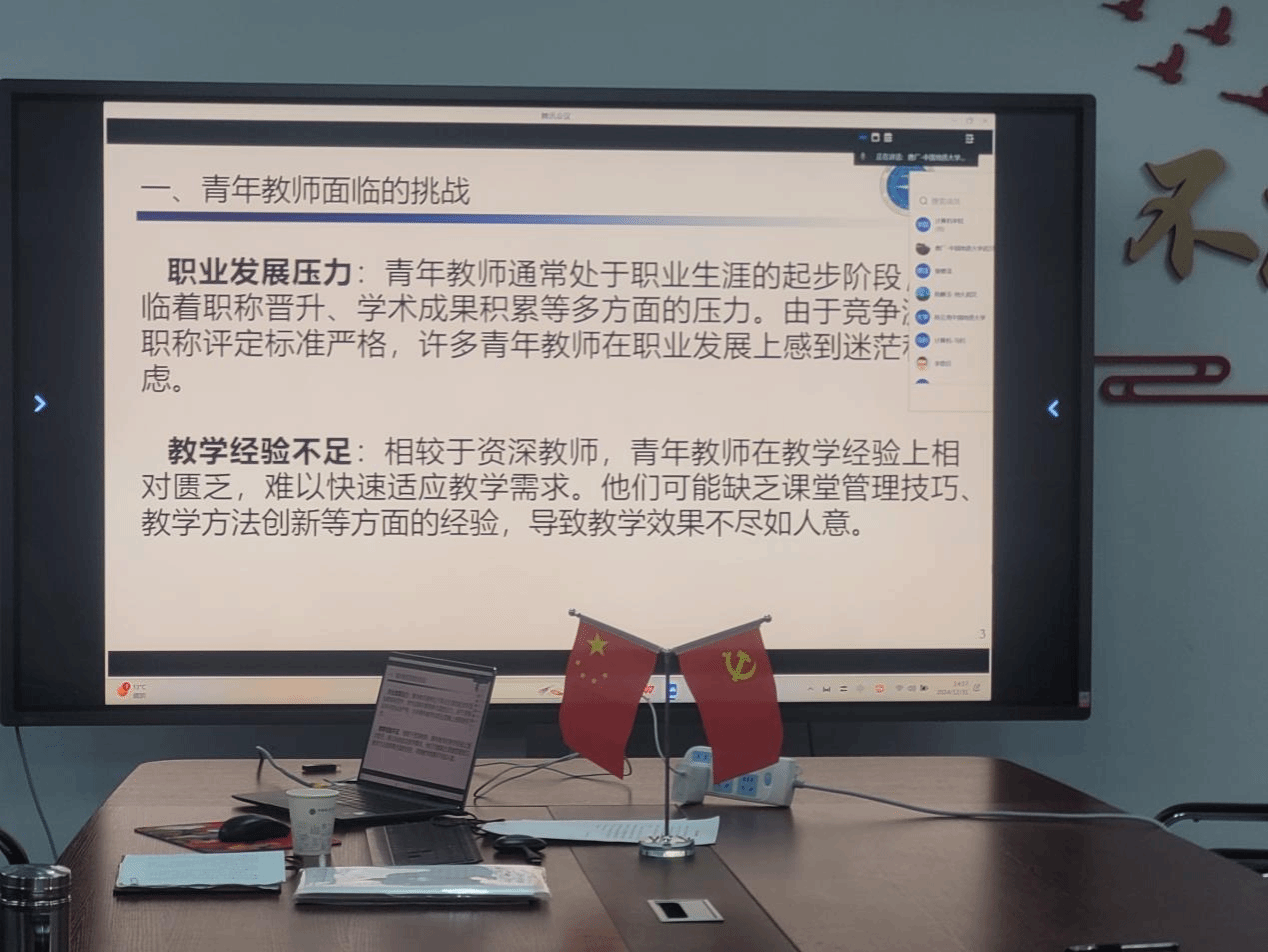 院长张洪艳以“青年教师的多方面压力”为题,分析了青年教师在从博士生转变为年轻老师的过程中面临的多方压力,并提出缓解压力、释放潜力的合理化建议。
