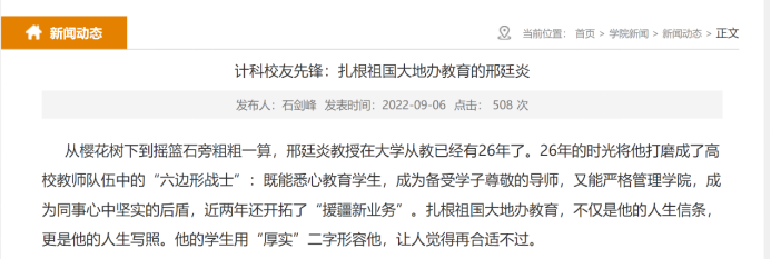 支部定期推举典型人物事迹材料,从师德师风、思政教育等方面撰写和宣传材料。目前已推出计科育人先锋吴信才和邢廷炎老师的通讯稿,如图5所示,已完成优秀校友通讯稿两篇,后期将持续推进。
