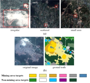 快速精准掌握矿区占地类型时空分布特征对矿山环境监测和矿区可持续发展评估至关重要。然而,采场、排土场、固体废弃物等矿山占地类型的形状极其不规则,空间分布分散,数量稀疏,这些特征导致在基于深度学习的特征提取过程中,特征很容易丢失,解释精度较低。