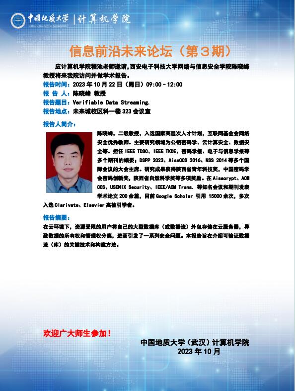 信息前沿未来论坛(第3期):西安电子科技大学陈晓峰教授、东京大学Tsuyoshi Takagi教授、荷兰代尔夫特理工大学Kaitai Liang教授