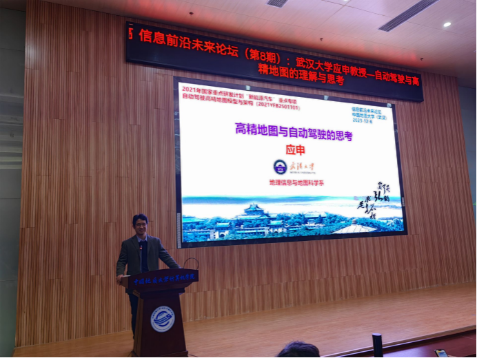 2023年12月6日,应beat365在线唯一官网刘刚教授邀请,武汉大学资源与环境科学学院地理信息与地图科学系主任、国家级高层次青年人才计划入选者、自然资源部科技领军人才应申教授来beat365官网访问,并作题为“自动驾驶与高精地图的理解与思考”的学术报告。